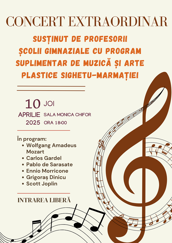 Concert susținut de profesorii școlii, 10 aprilie 2025, ora 18, sala Monica Chifor